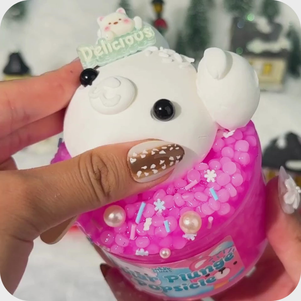 Texture: This slime is a slushee base that comes with an adorable polar bear popsicle clay, and add-ons to assemble with! Once combined, this slime becomes a crunchy, buttery texture that makes for great bubble pops.