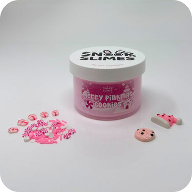 Texture: This slime features a buttercream slime base, accompanied by cookie-themed add-ons and Pinkmas-inspired sprinkles. This butter-like slime becomes a fluffy and squishy texture as you play with it!