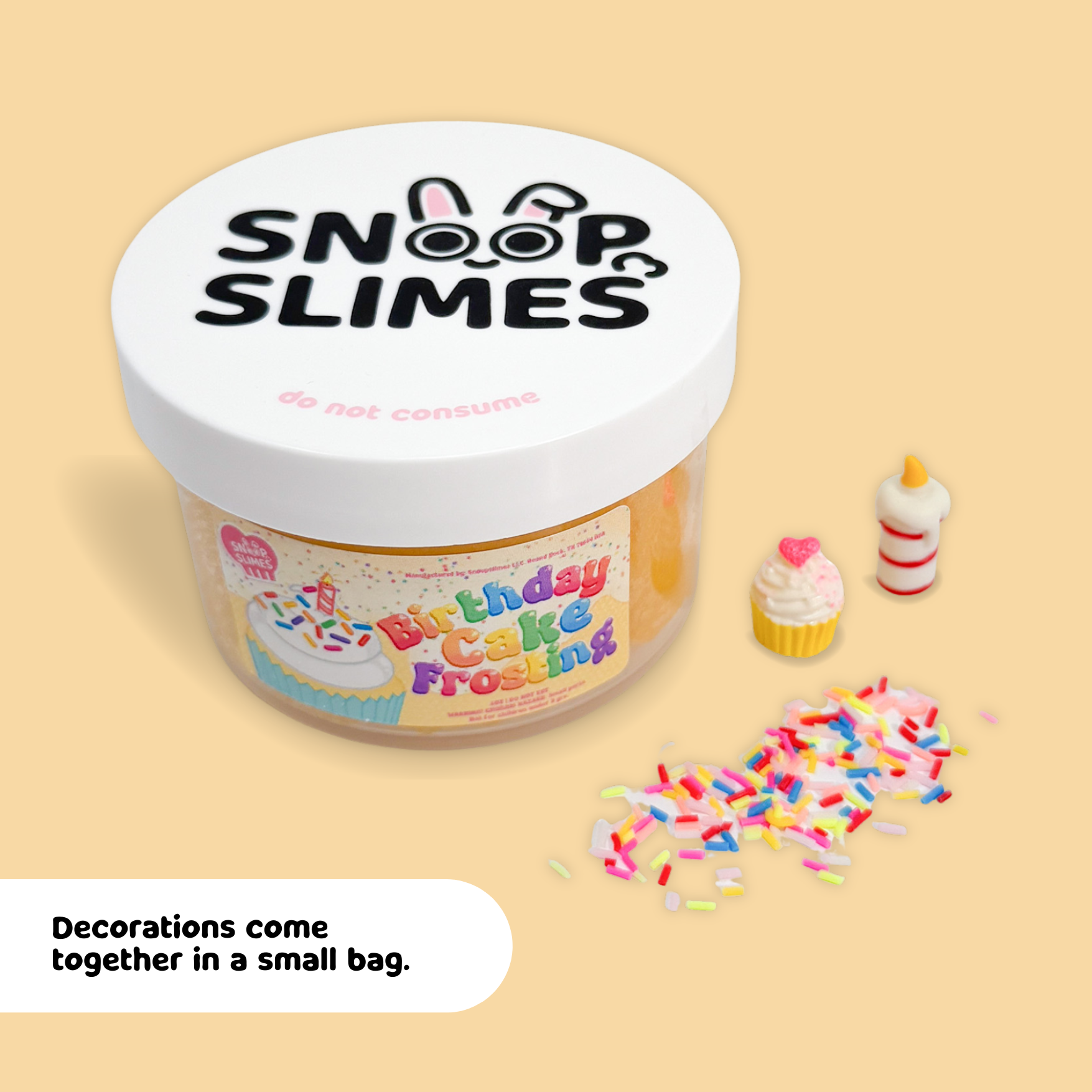 Texture: This slime features a dreamy cloud-like texture that comes with the cutest birthday cake themed charms and sprinkles. Stretch this slime to your desired fluffy consistency to make the most mesmerizing drizzles.