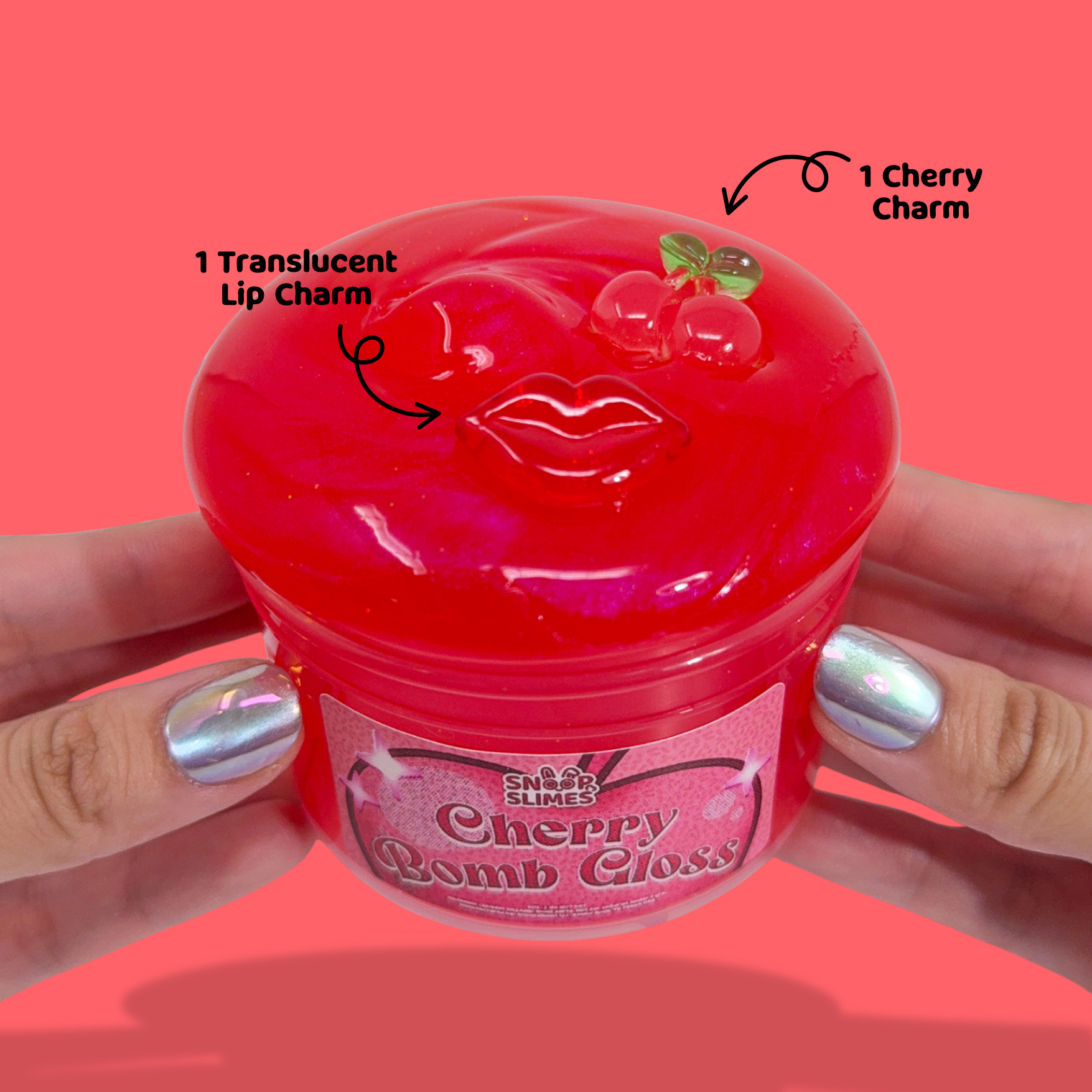 Texture: This slime features a mesmerizing metallic base with the cutest cherry themed charms! The beautiful thick slime base is amazing for clicks and bubble pops.