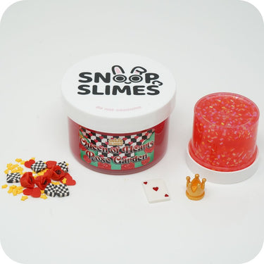 Texture: This slime is a slushee metallic base that comes with add-ons inspired by the iconic Queen of Hearts. This crunchy slime is packed with small slushee beads that make the perfect crunchy ASMR! Stretch and knead gently to avoid ripping and fallout, then squeeze to get the best pops.
