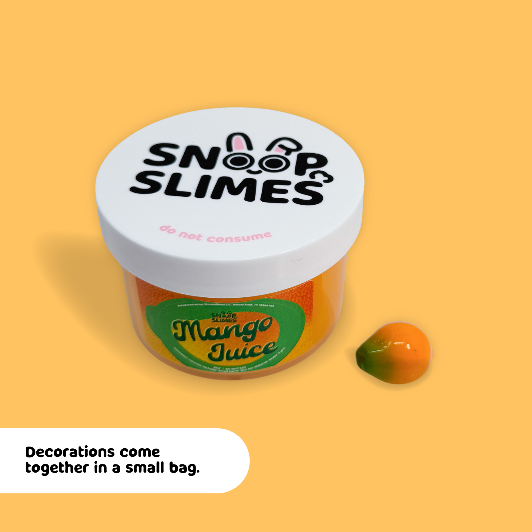 Texture: This slime features a glossy slime texture with a mango charm to add-on. It’s the perfect texture for pokes and bubble pops.